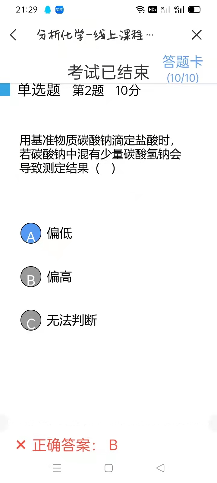 回复李园园3210060031 回复: 小测题目疑惑 张勇057029 - 2022年03月12日 星期六 10:21 基准碳酸钠和盐酸反应时,每0.5mol(53.00g)碳酸钠和1mol盐酸反应; 如果混入碳酸氢钠,则每mol(84.00g)碳酸氢钠和1mol盐酸反应。 用相同质量的混有杂质的基准物标定盐酸,消耗盐酸量减少,浓度测定值高于真实值。 永久链接 显示父帖